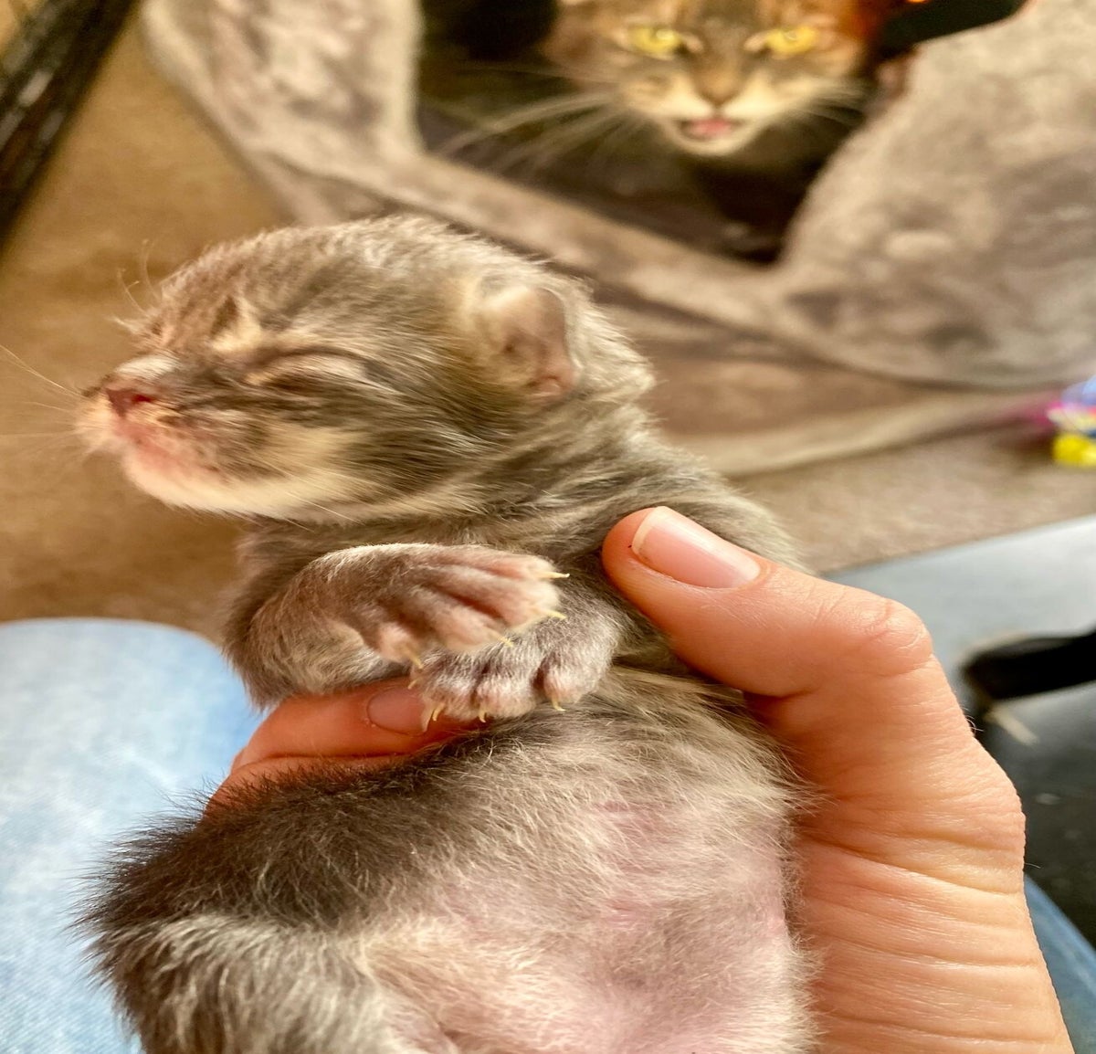 Update: Week 3: ze loopt al rondjes door de kamer met kleine bibberpootjes. Heel schattig om te zien. Drinkt goed bij Mama Pluis en krijgt van ons extra voeding via het flesje. Groei en ontwikkeling verloopt volgens schema!