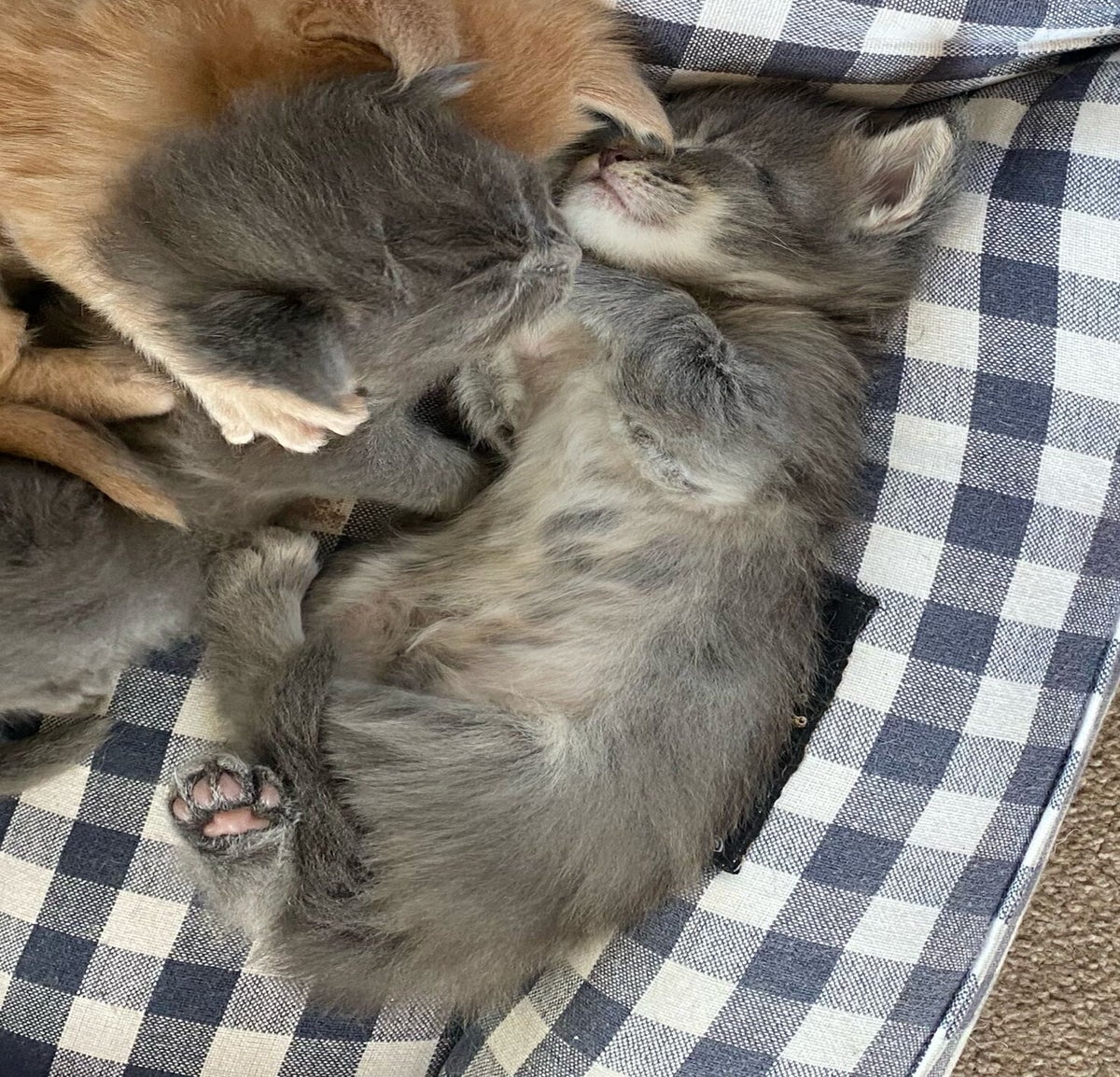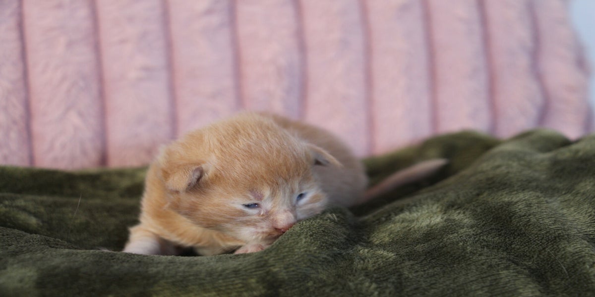 Update: Week 3: Hij kan goed voordringen om bij Mama Pluis melk te krijgen en valt daarna net als zijn broertje als een blok in slaap! Hij ligt graag lekker warm naast zijn broertjes en zusjes. Ook zijn groei gaat voorspoedig en goed.